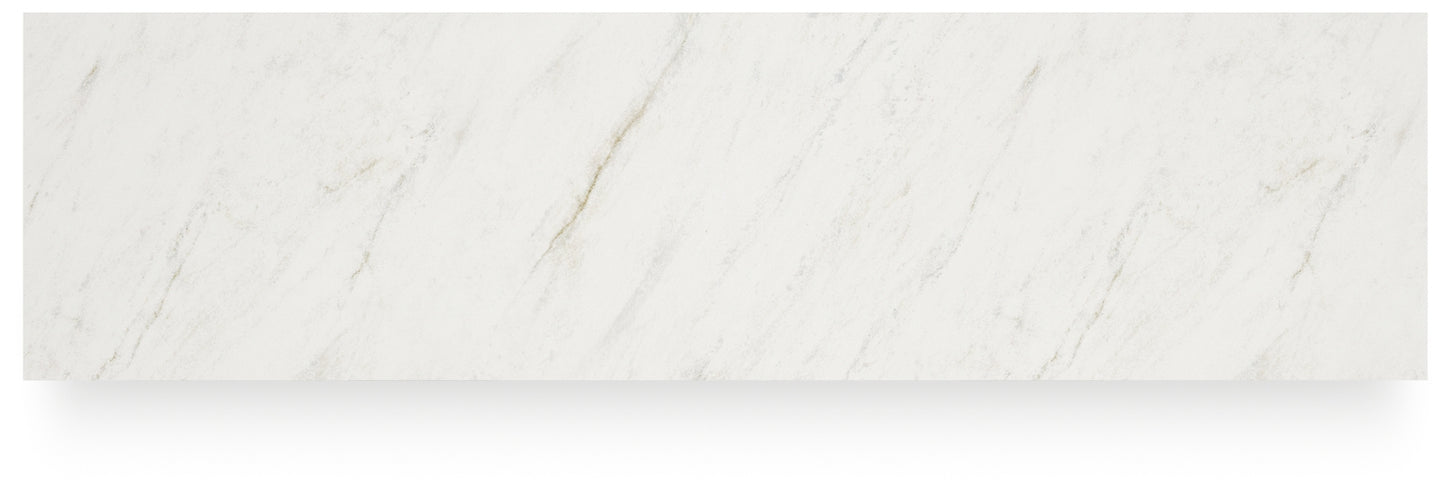 Details | Made with engineered wood (MDF/particleboard/plywood) and decorative laminate for the right balance of affordability and durability, Matte black finish with subtle replicated wood grain, Replicated white marble top, Decorative laminate replicates natural or man-made material surfaces with consistent color, pattern and texture, Handles with light bronze-tone finish, Open shelf, 2 smooth-gliding drawers, Drawer interiors are lined with a faux linen laminate for a clean, finished look, Ambient lighting under the top, Power cord included; UL Listed, Minor assembly required | |