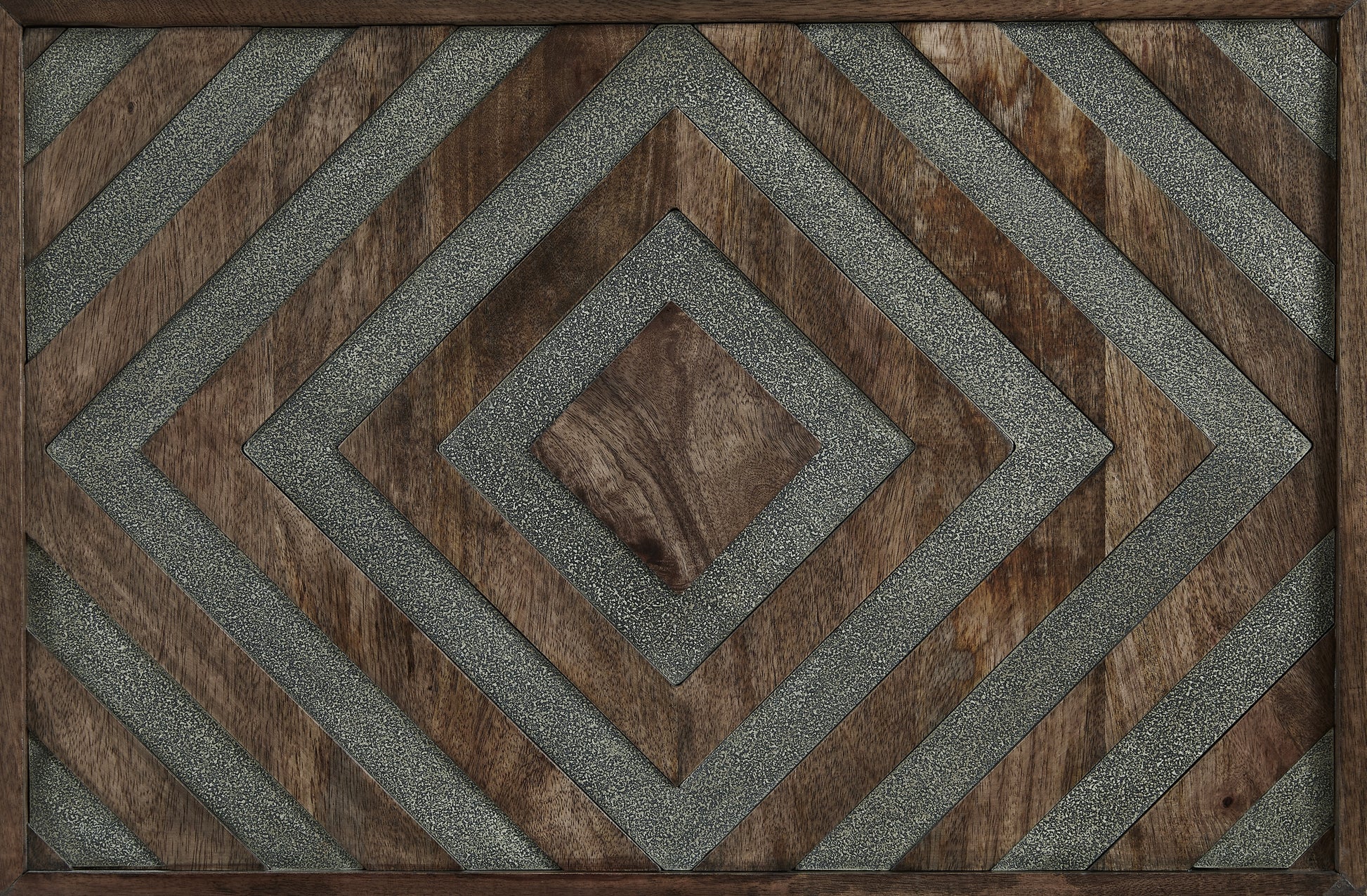 Details | Made with mango wood and engineered wood, Warm walnut finish, Sides have diamond pattern accented with grayish gold inset textural element | |