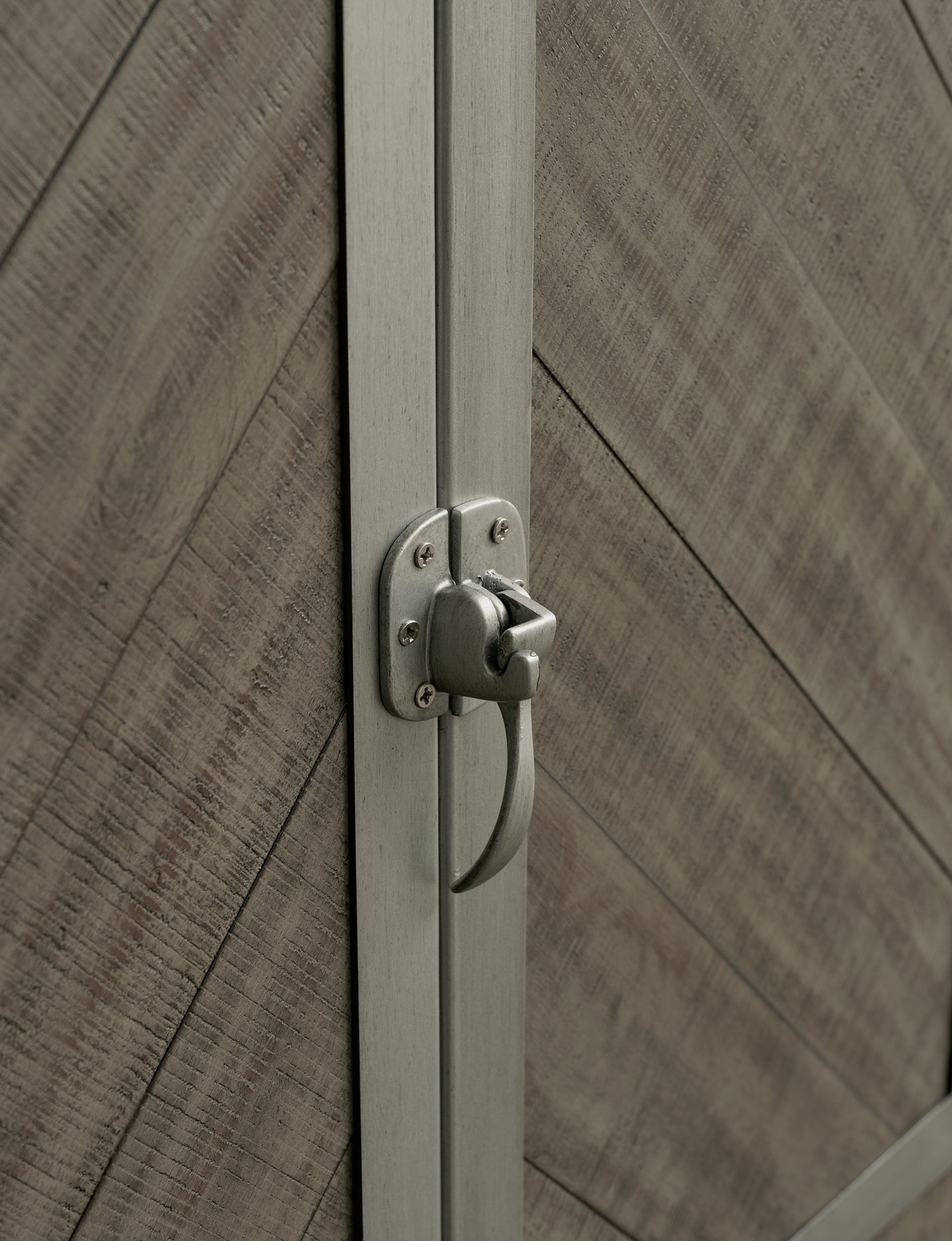 Details | Made of pine wood, veneer and engineered wood, Weathered gray finish, 2 cabinets, each with adjustable shelf, Metal hardware | |