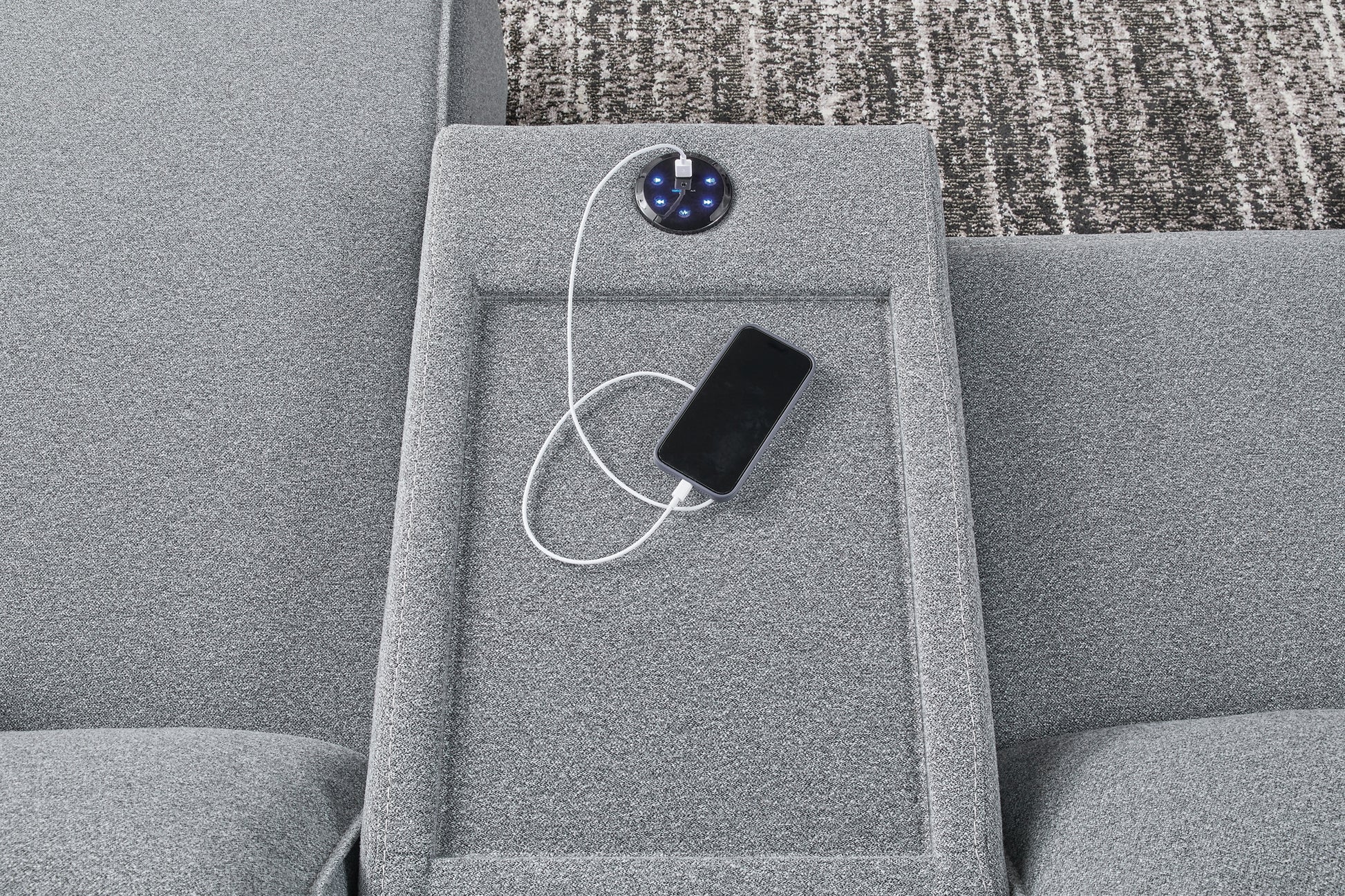 Looking cool and contemporary is great. But when it comes down to it, you’re all about low-maintenance lounging. With the performance fabric on this power reclining sectional with chaise, cleaning spills is a breeze. Its modular design caters to your ever-changing needs. And the console’s plexiglass top is the perfect beverage perch during family movie night or when guests drop by. It's proof that modern design and superb comfort go hand in hand.